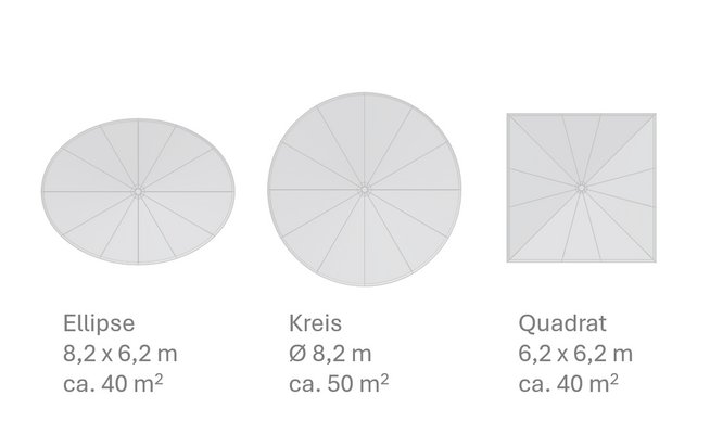 Ansicht URBAN Shade Ellipse 8x6m freistehend | ![]() |