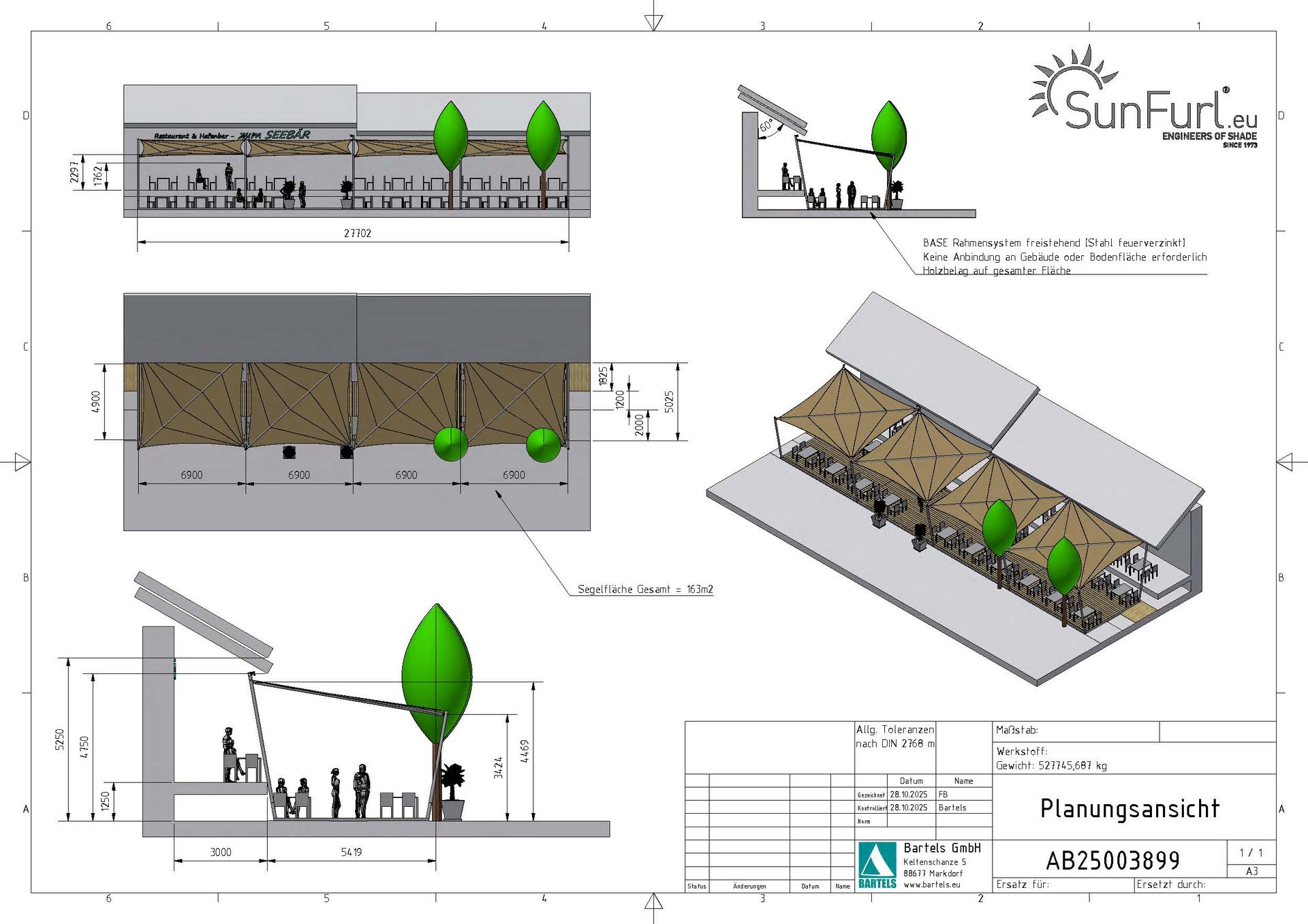 Die 3D CAD-Planung von SunFurl ermöglicht eine detaillierte und realitätsnahe Darstellung Ihres Sonnensegel-Projekts – perfekt abgestimmt auf die Anforderungen von Gastronomie, Hotellerie und öffentlichen Außenbereichen.