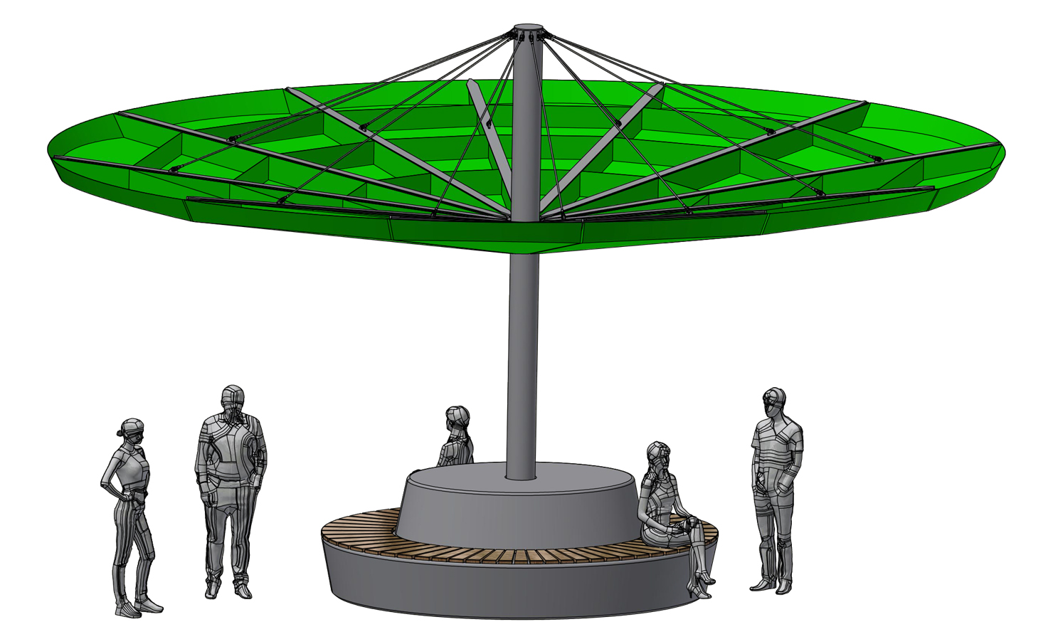 URBAN Shade ist die innovative Stahl-Designstruktur mit Dachbegrünung, die das urbane Klima verbessert und öffentliche Räume aufwertet. Sie bietet gleichzeitig Schatten, Sonnen- und Regenschutz und ist eine ganzjährige Lösung für Parks, Plätze, Schulhöfe und Haltestellen.